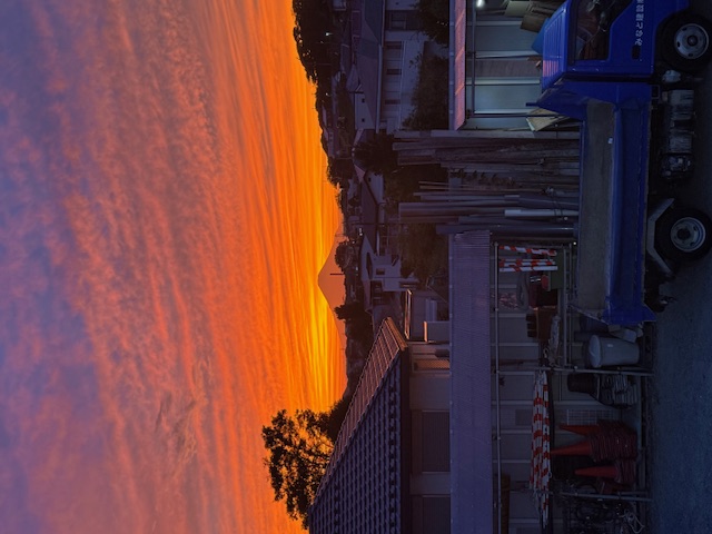 事務所2階からの真っ赤な夕焼けに浮かぶ富士山。 今から8年前の快晴の昼間、ここで見た雄大な富士山に一目惚れして 即決でこの場所に事業所を定める事にしました。 その間、会社は様々な変化が有りましたが この素晴らしい眺望は、その頃と何も変わりません。