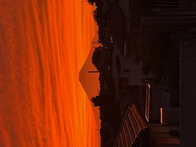 事務所2階からの真っ赤な夕焼けに浮かぶ富士山。 今から8年前の快晴の昼間、ここで見た雄大な富士山に一目惚れして 即決でこの場所に事業所を定める事にしました。 その間、会社は様々な変化が有りましたが この素晴らしい眺望は、その頃と何も変わりません。